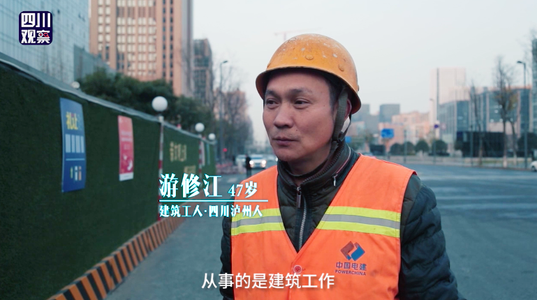 47岁的泸州人游修江来成都从事建筑工作两年了,他对2020年最大的期待就是过年拿到工资,和家人团聚。