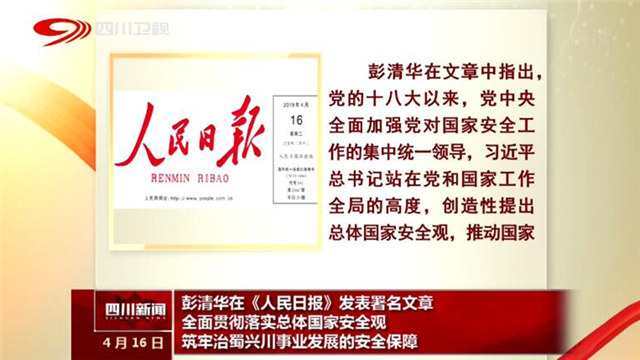 彭清华在《人民日报》发表署名文章 全面贯彻落实总体国家安全观 筑牢治蜀兴川事业发展的安全保障