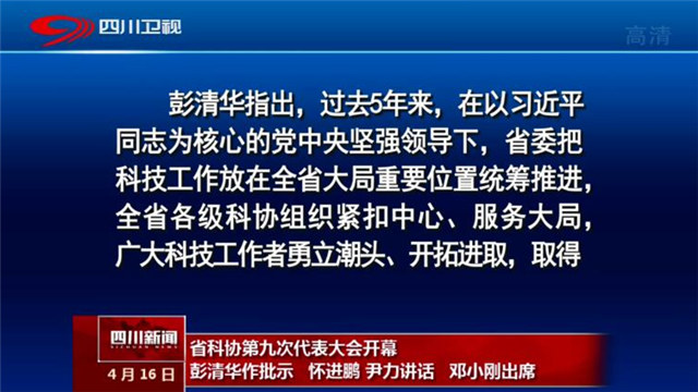 省科协第九次代表大会开幕 彭清华作批示 怀进鹏 尹力讲话 邓小刚出席