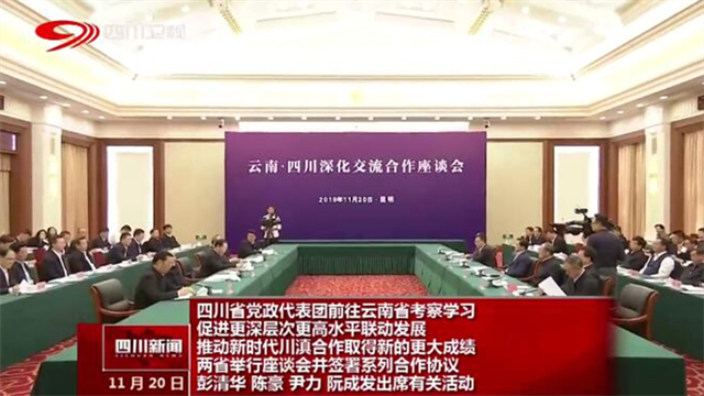 四川省党政代表团前往云南省考察学习 促进更深层次更高水平联动发展 推动新时代川滇合作取得新的更大成绩 两省举行座谈会并签署系列合作协议 彭清华 陈豪 尹力 阮成发出席有关活动