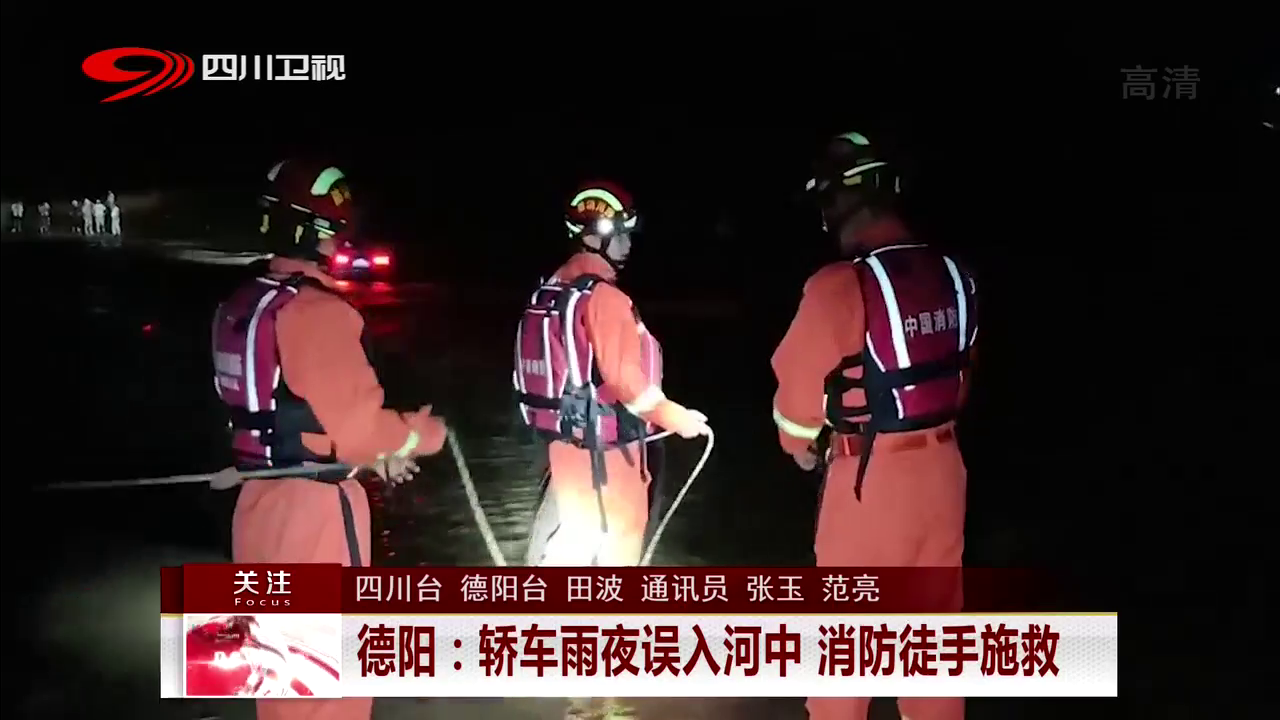 德阳:轿车雨夜误入河中 消防徒手施救