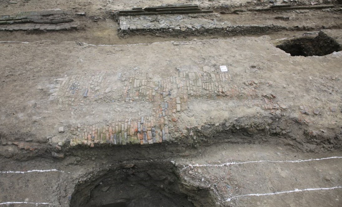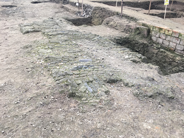 在考古挖掘现场北端还挖掘出了一条2.5米至3.2米宽的元代青石板路,根据现场解剖面提供的地理信息,隐藏在它之下的是一条主干道。据成都市文物考古研究院副研究员易立推断,这是晚唐时期修建的一条由东向西的城市主干道,他形容这条路是在当时的作用堪比我们如今的“天府大道”。