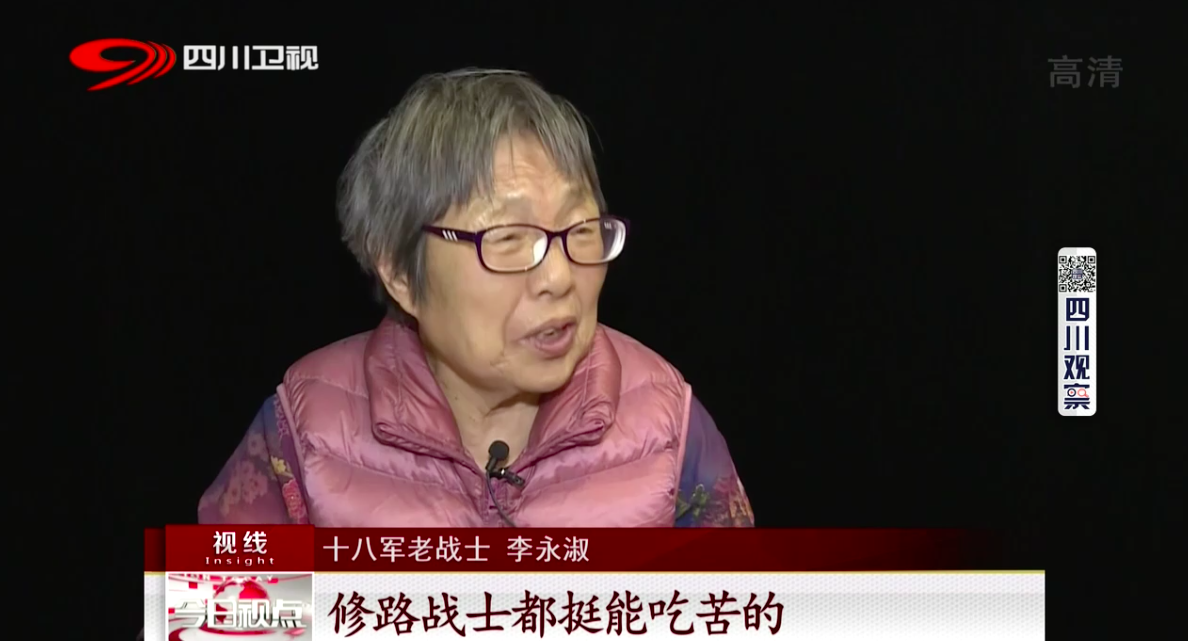 十八军老战士 李永淑:“打炮眼、放炸药都是悬空,拴着带子,拴着麻绳。修路战士都挺吃苦,都不怕死,不怕艰苦,不怕死。为了修通川藏路。”