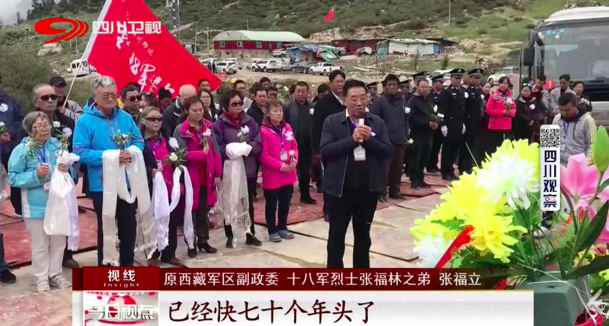 原西藏军区副政委、十八军烈士张福林之弟张福立:“老兄长,你守在川藏线上已经快七十个年头了,这70年来,川藏线发生着巨大的变化,川藏线沿途的群众,特别是藏族群众,也发生了翻天覆地的变化,他们富起来了,我们国家也强起来了。”