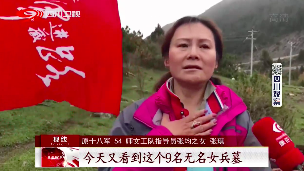 原十八军 54 师文工队指导员张均之女 张琪:“当年我的父母,也是十八军,从这边走过来,今天又看到这个9名无名女兵墓,心里边特别特别难受,他们当年那么年轻,真的,他们的青春,当年也就十五六岁,永远定格在这个地方了,这是她们最美的芳华。我觉得现在我们就要传承,传承她们这种精神,传承红色基因。”