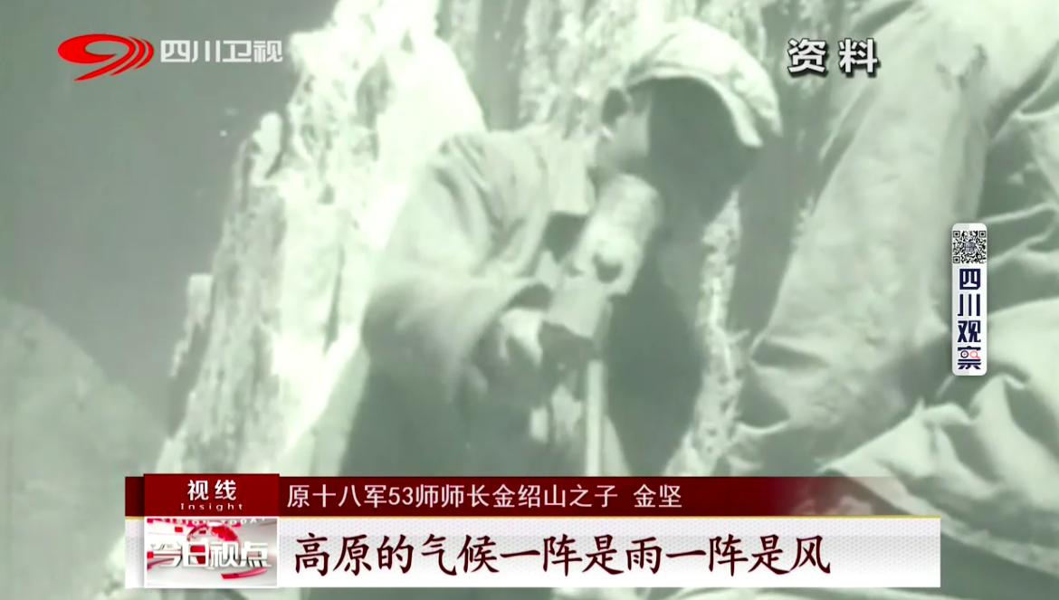 原十八军53师师长金绍山之子 金坚:“高原的气候一阵是雨一阵是风,一阵是太阳暴晒,那会儿谈不上劳动保护用品,没有,没有这种概念也没有这种东西,你能有个军衣穿就算不错了,完全靠双手,到河里捞石子,碎石就是拿砖头一点点碎石,你想人来敲碎石得受多少苦,尤其是女兵们,双手都磨烂了,太阳晒得脱了皮。”