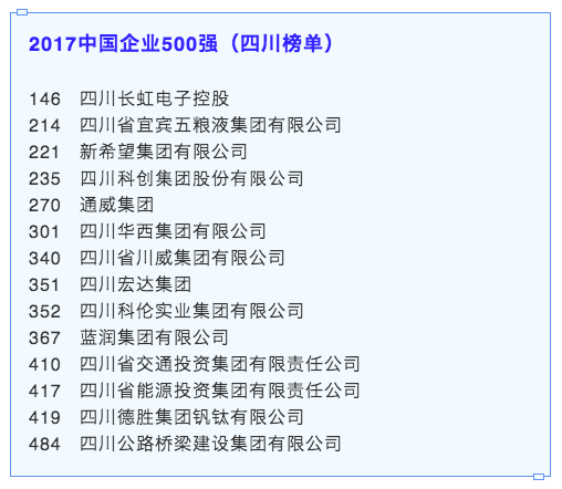和去年相比,今年三家企业的排名又有了新的变化,新希望集团比去年上升了92位,位列140名;五粮液集团比去年上升了2位,位列206名;四川长虹比去年下降了11位,位列151名。