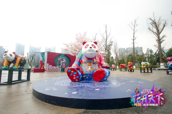嘉年华现场,憨态可掬的巴郎熊猫也是人气满满,它是由知名文创品牌GOGOPANDA专门为花开天下打造的专属IP形象。