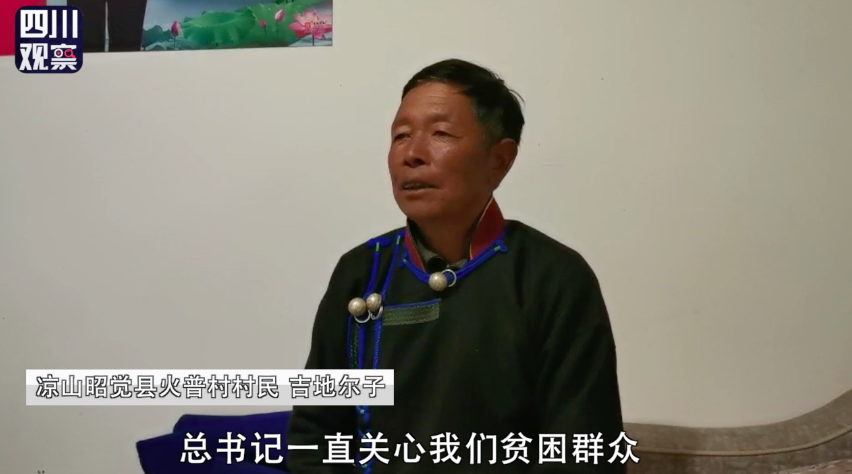 昭觉县解放乡火普村村民 吉地尔子:“听到总书记的新年贺词,非常感动,总书记一直关心我们贫困群众,今后我们也要艰苦奋斗,脱贫致富奔小康。”