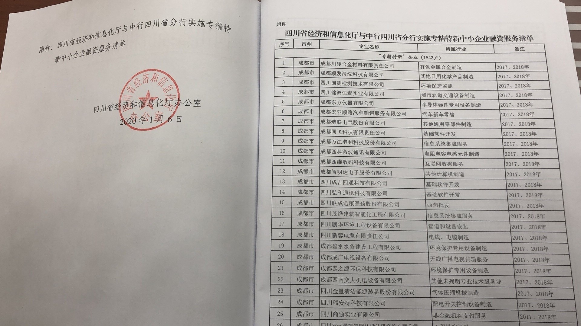 会上,省经济和信息化厅印发了实施专精特新中小企业融资服务清单,包含“专精特新”企业1542户,高成长型中小企业257户,行业“小巨人”企业28户,制造业单项冠军中小企业8户,获2019年省级资金支持的技改企业101户,两化融合管理体系达标企业81户,省级以上技术创新示范企业61户,共计2078户企业。