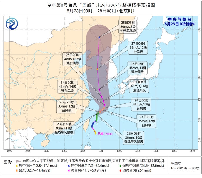 国家海洋预报台消息,受今年第8号台风“巴威”影响,预计中国东海海域将掀起狂浪到狂涛区,最强可达强台风级或超强台风级。