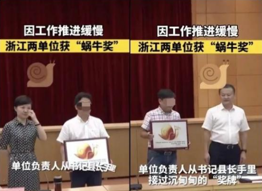 ▲浙江两单位因懒政怠政被颁“蜗牛奖”