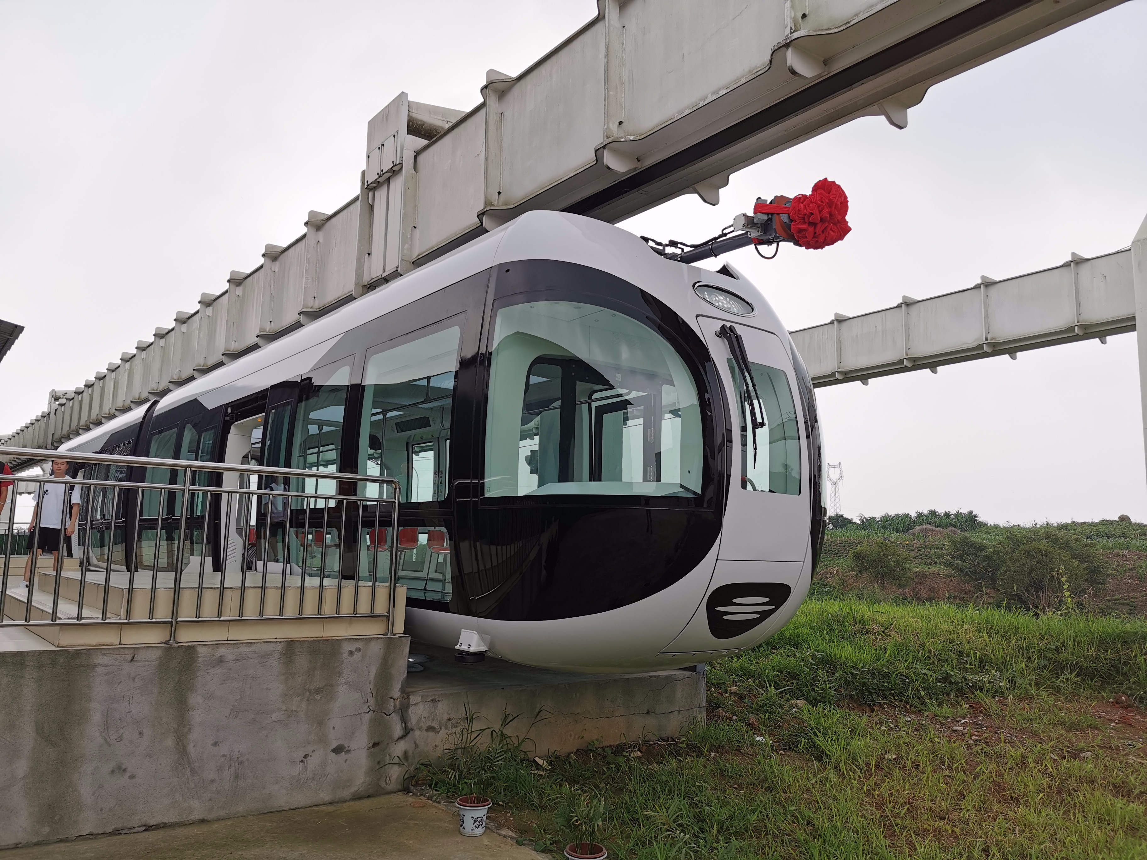 6月26日,国内首条新能源空铁示范线——大邑空铁项目SKY CITY平台车辆在成都下线亮相,以悬挂式单轨交通最新科研成果献礼建党100周年。线路开通后,将成为大邑县与安仁古镇旅游线路上的一道“新风景”。
