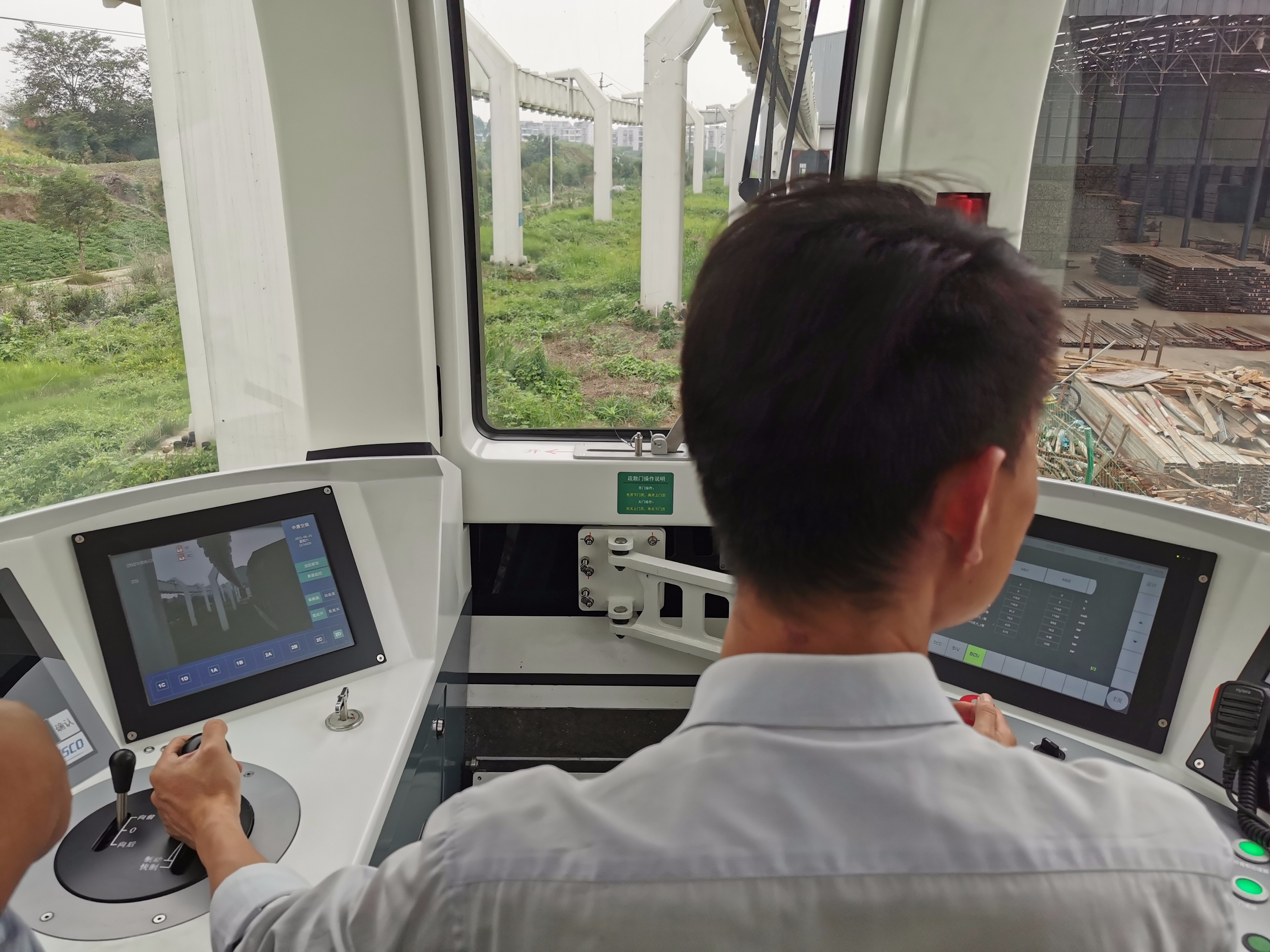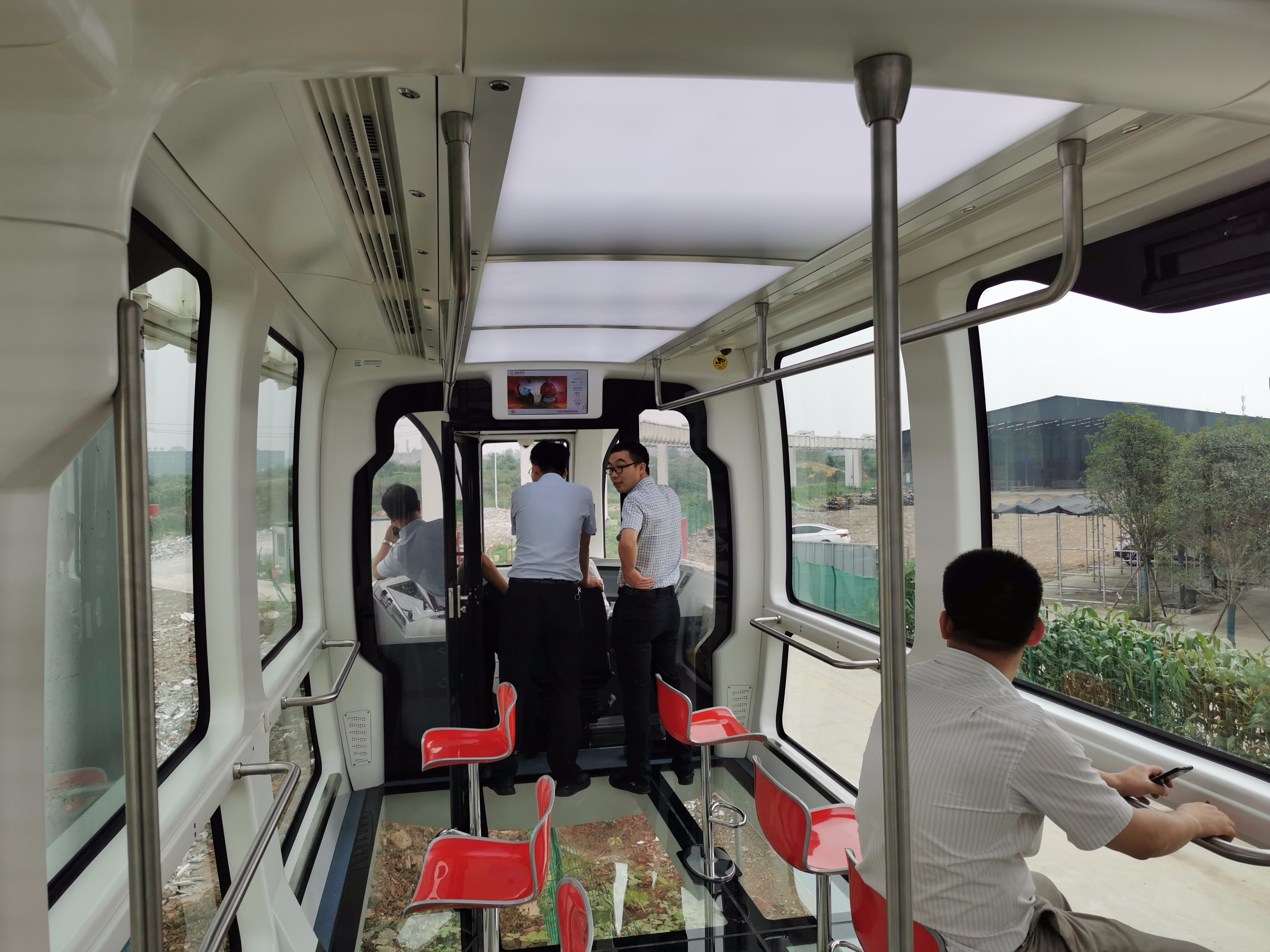 记者试乘车辆看到,空铁车辆的车门、车窗、地面几乎是全透明的,未来感十足,座椅正对透明车窗,行驶在空中,窗外和脚下的风景一览无余,像一个空中移动观景平台,一节车厢最大载客量为120人。试乘乘客唐迅告诉记者:“车辆很新颖,很时尚,坐起来非常平稳舒服,如果是旅游坐这辆车,我的体验会更好,能够助推当地旅游业的发展。”