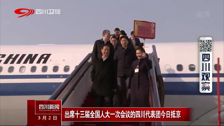 来关注即将召开的全国两会。带着全省人民的期盼,肩负共商国是的重任,今天下午,出席十三届全国人大一次会议的四川代表团抵达北京。