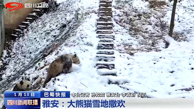 雅安:大熊猫雪地撒欢