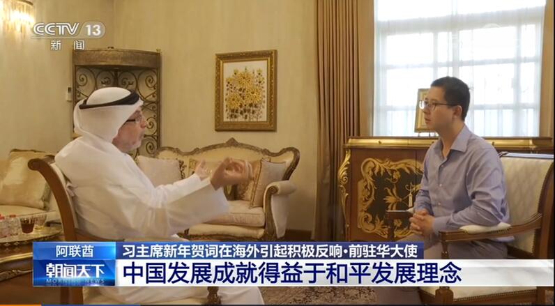 习近平主席2020年新年贺词在海外引起了积极反响,长期致力于阿中友好合作的阿联酋前驻华大使欧麦尔·白伊塔尔全程关注了习主席的新年贺词,并对其中构建人类命运共同体的内容印象深刻。