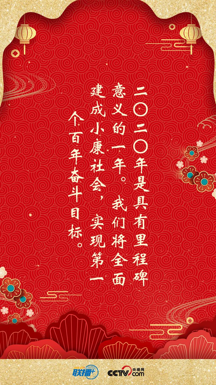2020年是具有里程碑意义的一年。冲锋号已经吹响,奋斗的新征程已开启。央视网《联播+》特梳理习近平新年贺词中相关话语,与读者一同用奋斗成就强国梦,只争朝夕,不负韶华。