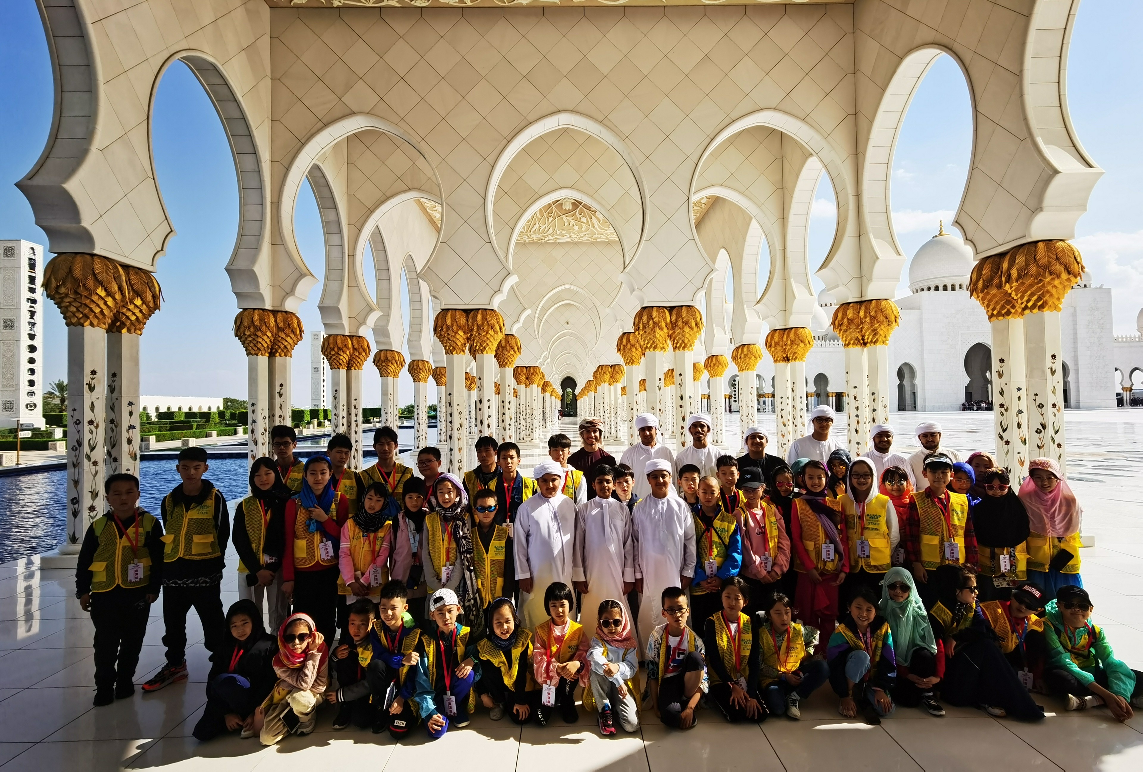 当地时间上午9点半,小朋友们首先来到了谢赫扎伊德清真寺参观,这里是阿联酋最大、全世界第八大的清真寺,于2007年建成后对公众开放。