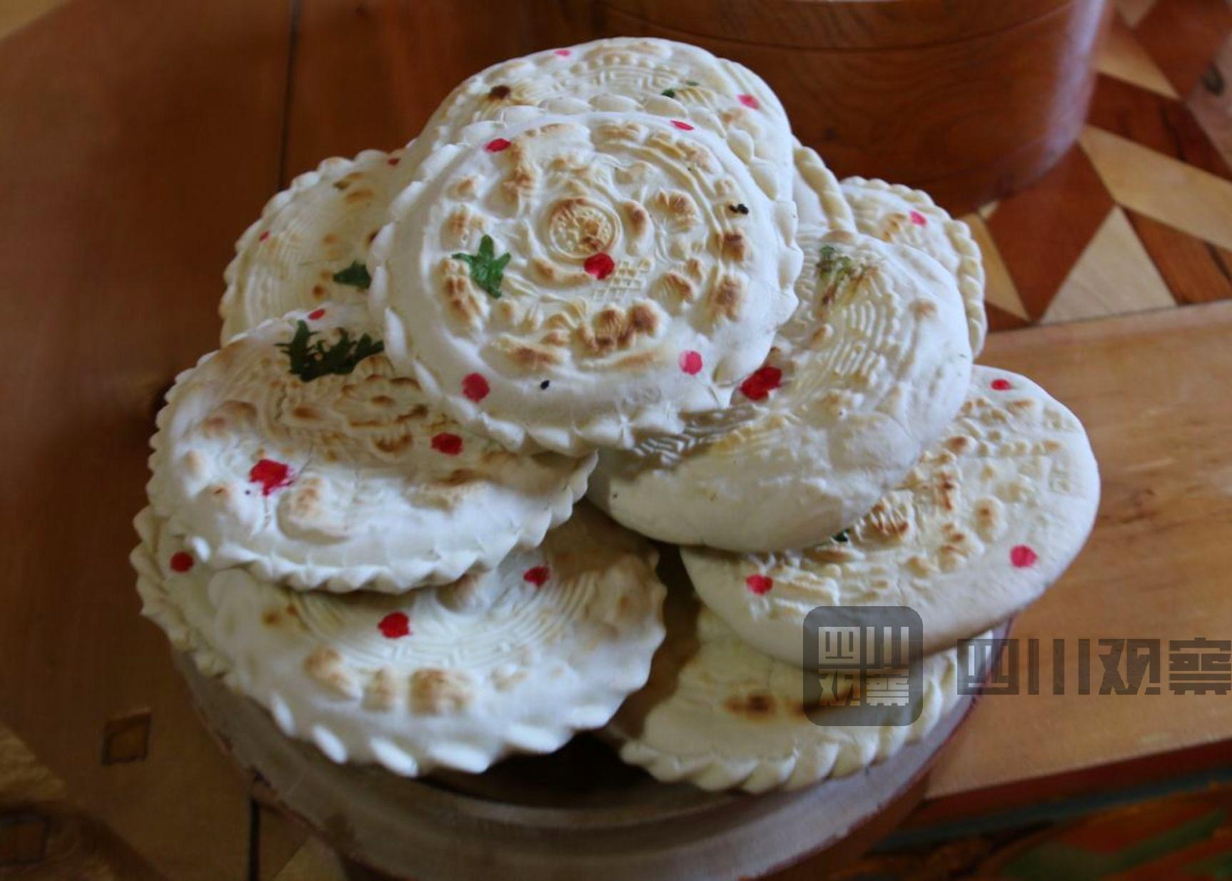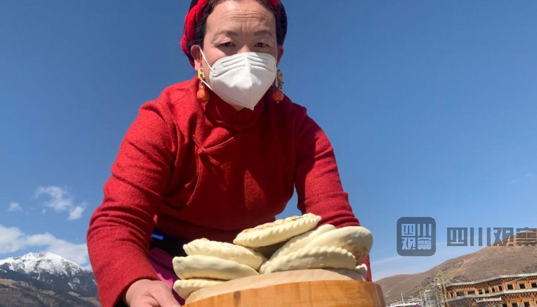 花馍馍是一种象征民族团结的食品,是一种藏式月饼,相传起源于清代,流传至今已是道孚县特有的吉祥美食。今年,被提前端上餐桌的花馍馍,虽不能带给人们丰收的喜悦,却承载着更多美好的希冀。 没有萝卜叶,就选用的菜叶,没有新打的面,就用的袋装的面粉,而且这些材料全是政府统一配送到家的。