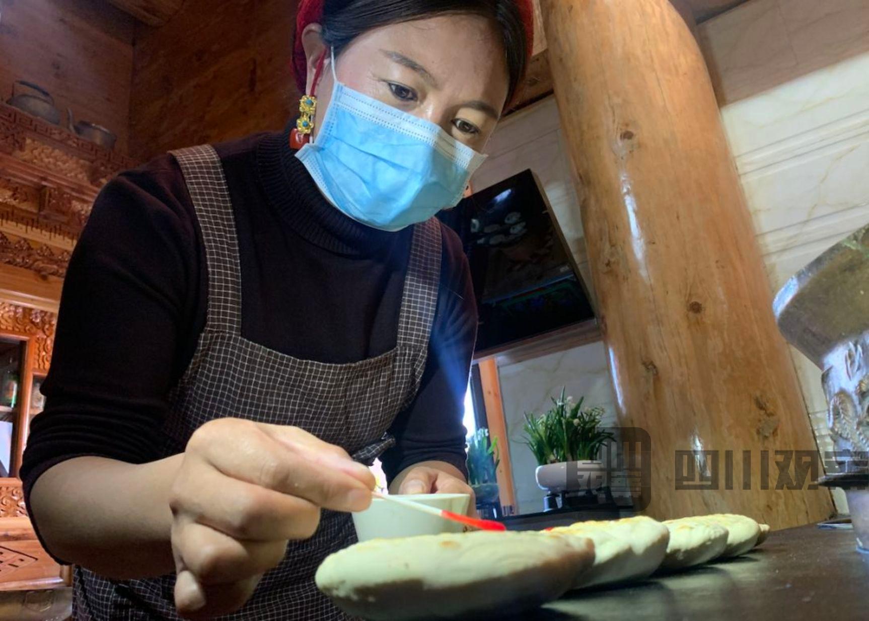 道孚县鲜水镇团结二村村民 亚玛青初:“我们原来这个花馍馍只有在中秋节的时候做。这次在藏历年做呢,主要是希望工作在一线的医护人员和工作人员能够平平安安,早日和家人团聚。”