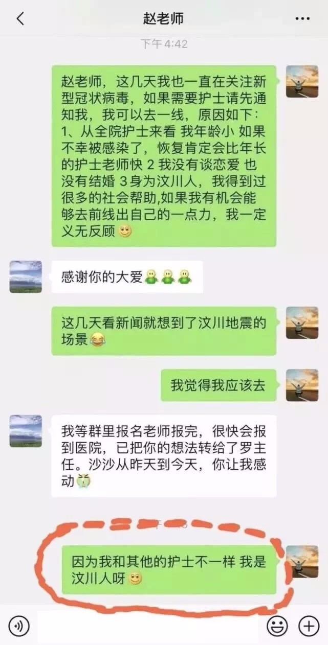 她发给护士长赵永琴的微信里