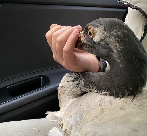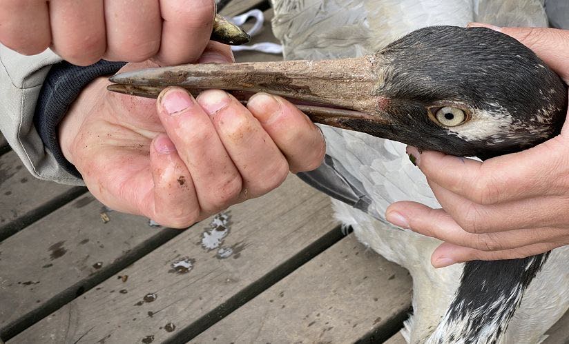 据工作人员观察,黑颈鹤没有外伤,在人的帮助下也能顺利进食,因此初步判断它是因长时间飞行导致体力不支,本想停在河边觅食,却没能顺利降落。