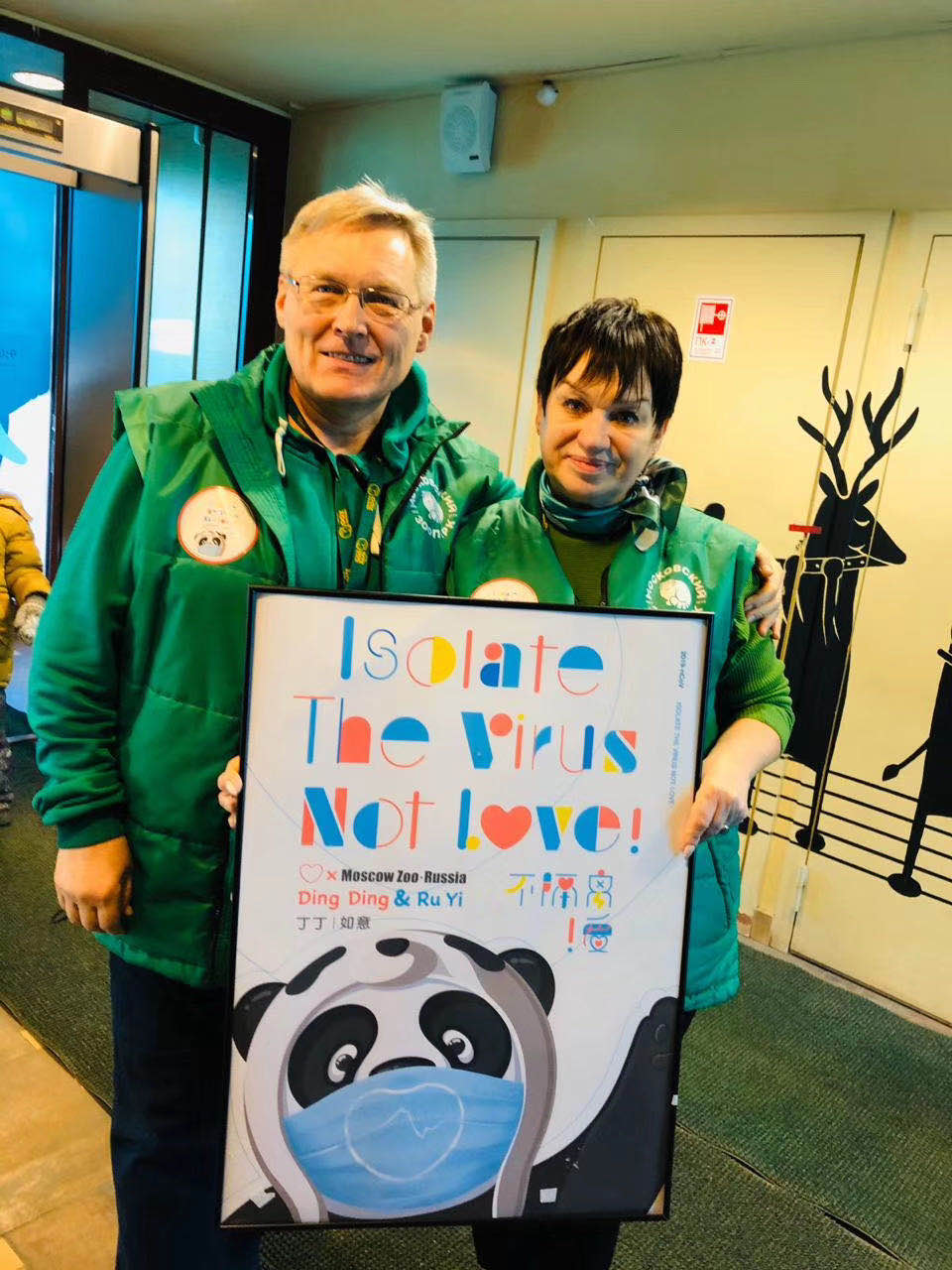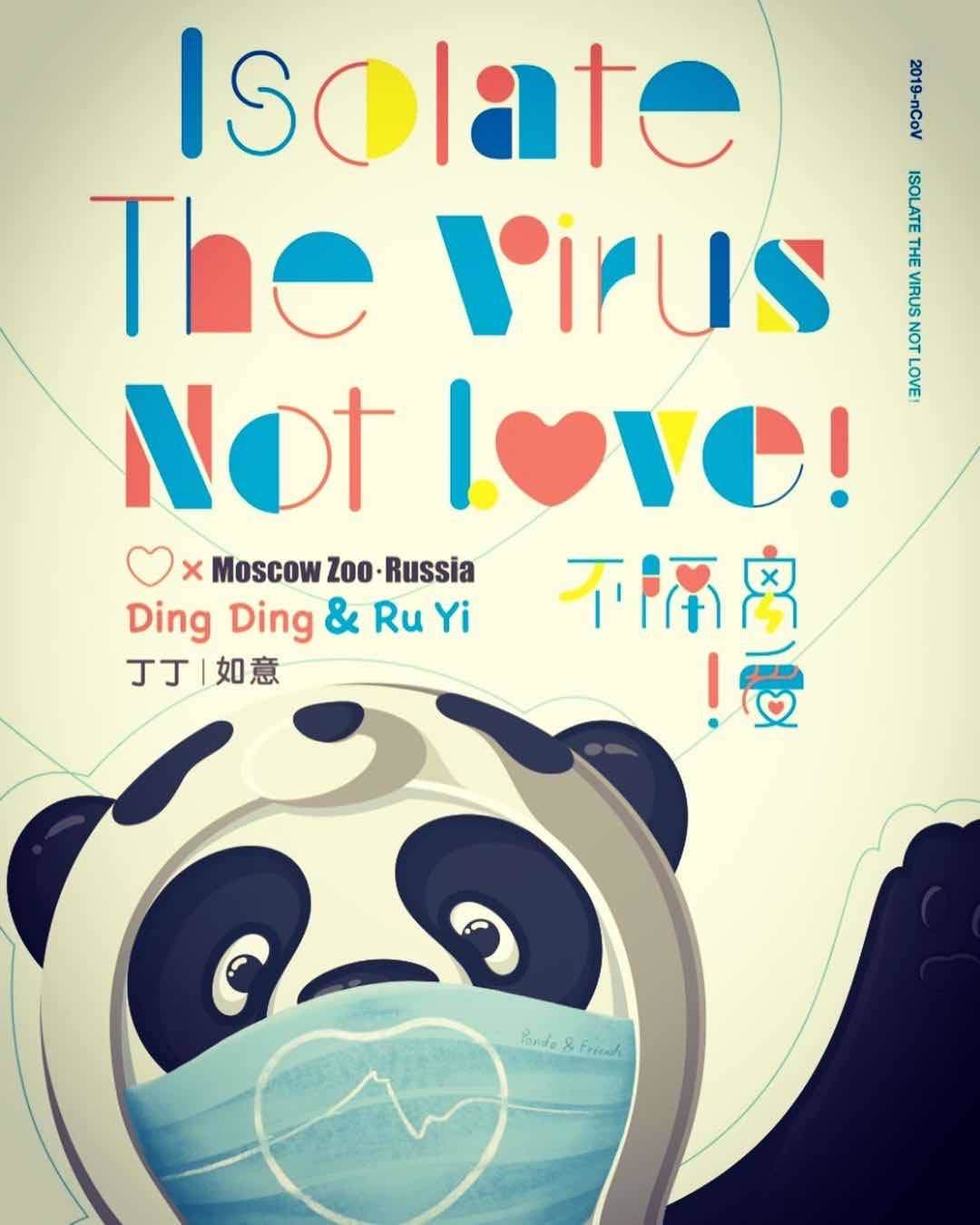 面对疫情,俄罗斯莫斯科动物园专门设计了一款熊猫元素的宣传海报,海报中一只可爱的大熊猫戴着口罩,并配上文字“Isolate The Virus, Not Love!”(隔离病毒,不隔离爱),动物园将海报制成圆形贴纸,贴在每个员工的工作服上,向熊猫中心传达祝福与鼓励。日本东京上野动物园表示,受疫情影响,已暂停营业,希望同大家一同战胜新冠病毒。韩国三星爱宝乐园、芬兰艾赫泰里动物园等国外合作单位纷纷发来祝福视频,表达了对熊猫中心抗击疫情的关心与祝愿。新加坡河川生态园饲养员团队表示,在这个非常的时刻,齐心协力,对抗疫情,中国大熊猫保护研究中心加油!中国,加油!印尼塔曼野生动物园工作人员用优美的歌声,动听的旋律致敬抗疫一线的医护人员以及奋战在疫情一线的每一位工作者,并表示会与熊猫中心同舟共济,共克时艰,武汉加油!中国台湾地区台北市立动物园以大熊猫“圆仔”的视角,携大熊猫“圆圆”,为全国共抗新冠肺炎疫情加油。中国香港海洋公园大熊猫饲养团队与大熊猫“安安”、“乐乐”、“盈盈”,祝愿所有大熊猫身体健康,平安顺遂,早日战胜疫情。