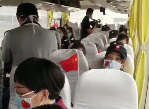 4月7日,四川省最后一批援湖北医疗队队员162人将返川。其中,被称为“王炸”天团的四川大学华西医疗队队员们在开往机场的大巴车上唱起《成都》,表达对家乡的思念之情。