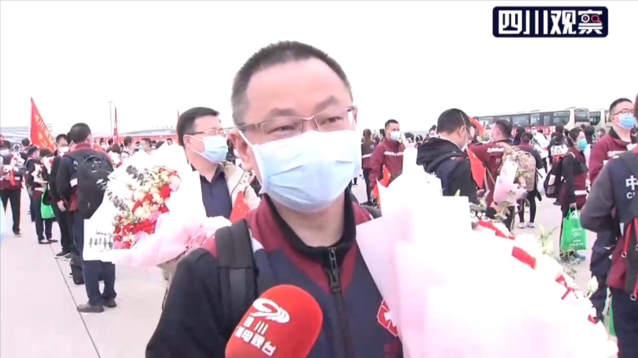 随后,《四川观察》记者专访了康焰队长,他说“我们任务完成得不错,我把我的队员一个不缺、完好无损地带回来了,实现了我出发时的承诺。”康焰还告诉记者,回到家乡很开心,但离开湖北时非常不舍,“毕竟我们一起工作了60多天,我们还有病人交给我们湖北的同仁救治,我们和湖北同道建立了深厚的感情,我们见识了英雄的湖北!相信很快我们能再去见识美丽的湖北!”