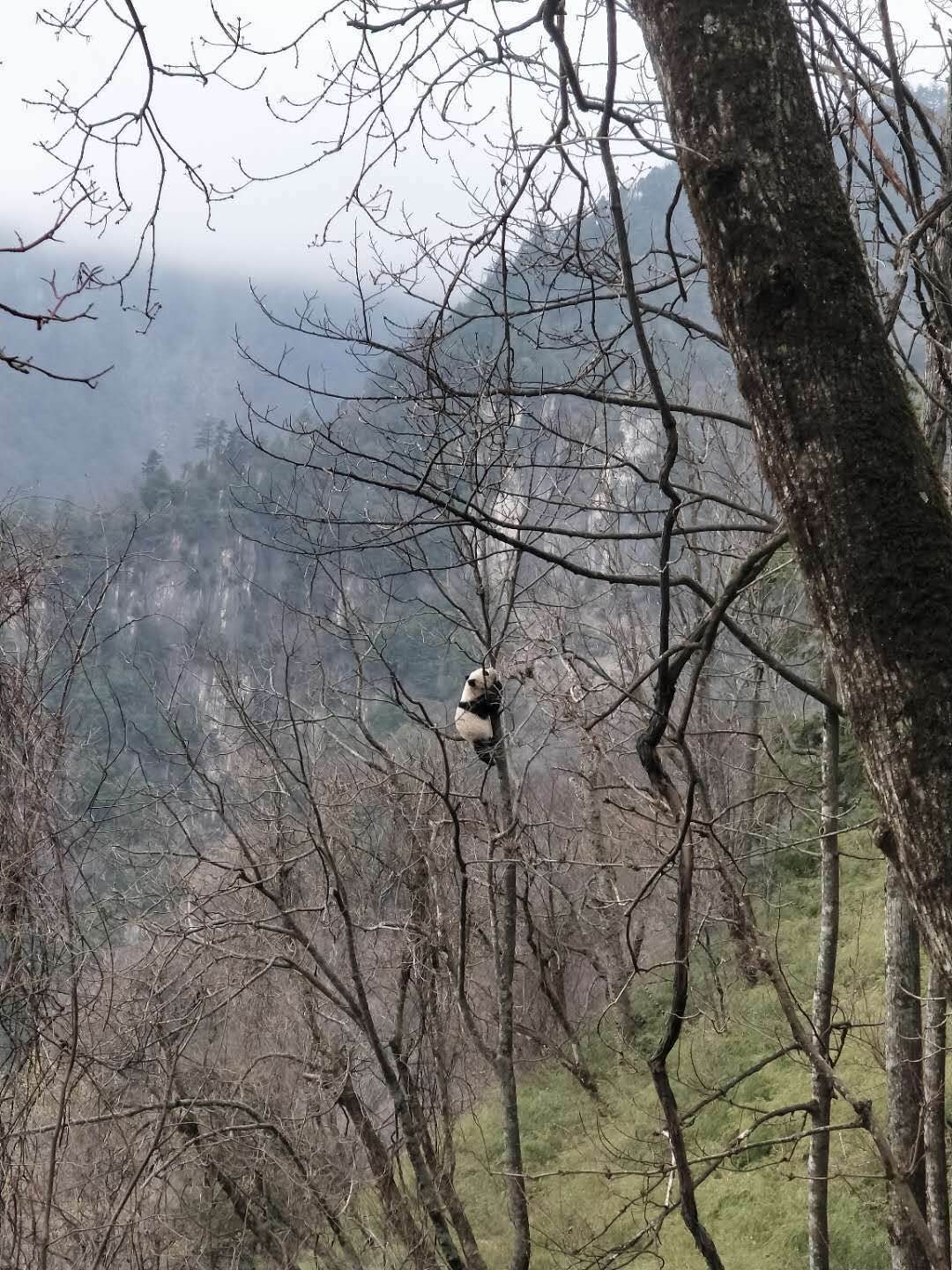 时间仅隔一天,唐家河白果坪保护站工作人员在摩天岭区域的纸厂沟(海拔2240米处)又发现两只大熊猫,经过观察初步判断其为母子。幼崽在竹林中的树木上休息,母体在地上的竹林中放哨警戒,遗憾的是,因青川箭竹长势茂盛,无法拍到两只大熊猫同框画面。随后,工作人员对附近的新鲜大熊猫粪便进行了样品采集,以便进一步进行大熊猫DNA检测。