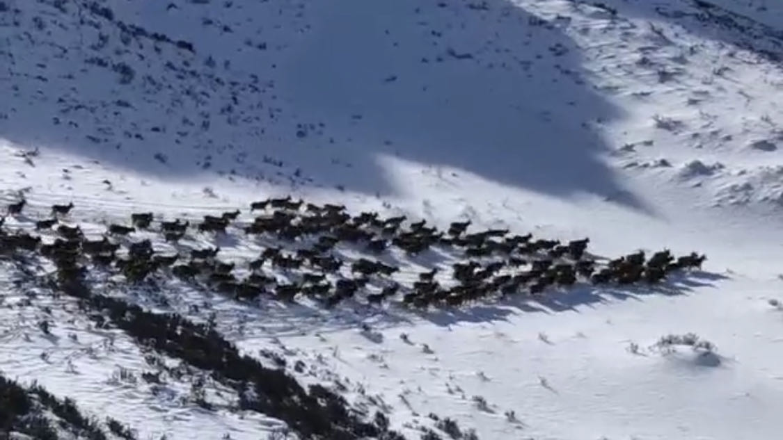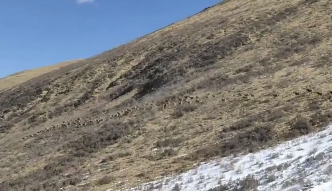 4月22日,记者从省林草局获悉,色达县牧民今天在色达县年龙乡的日撒玛村放牧时,拍到了白臀鹿鹿群,场面十分壮观。