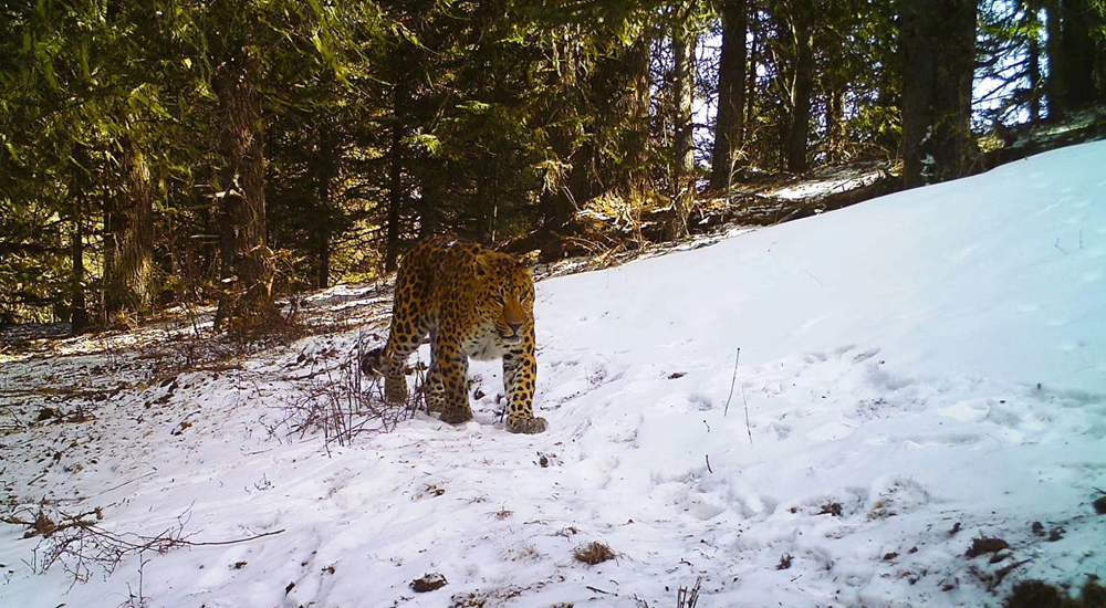 红外相机记录显示,这只豹出现的时间是2020年4月15日21时16分。喜好夜间活动,正是豹的天性,照片中的这只豹体型健硕,正昂首阔步从镜头前经过。