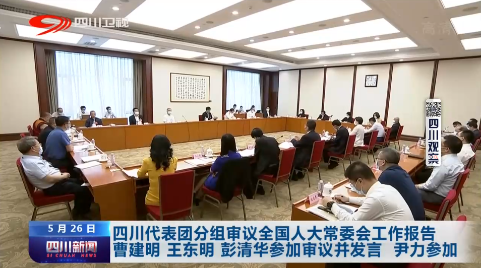 5月26日上午,十三届全国人大三次会议四川代表团在驻地举行分组会议,审议全国人大常委会工作报告。全国人大常委会副委员长曹建明,全国人大常委会副委员长、中华全国总工会主席王东明,省委书记、省人大常委会主任、代表团团长彭清华参加所在小组审议并发言,省委副书记、省长、代表团副团长尹力参加审议。