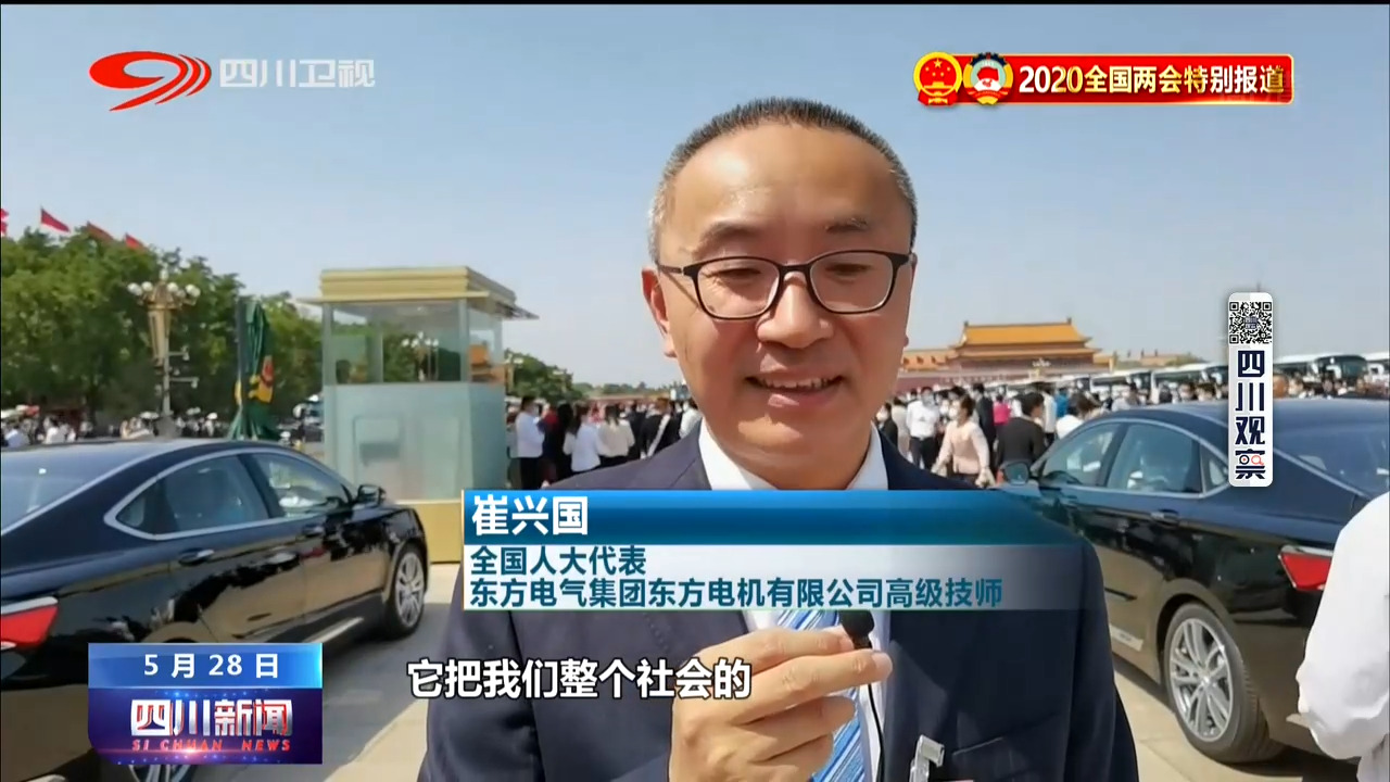 全国人大代表 东方电气集团东方电机有限公司高级技师 崔兴国:我想我们能够顺利通过民法典,它把我们整个社会的人与事之间的关系确定下来,使我们更走向法治化使我们人民的权利能够得到更大的保障。