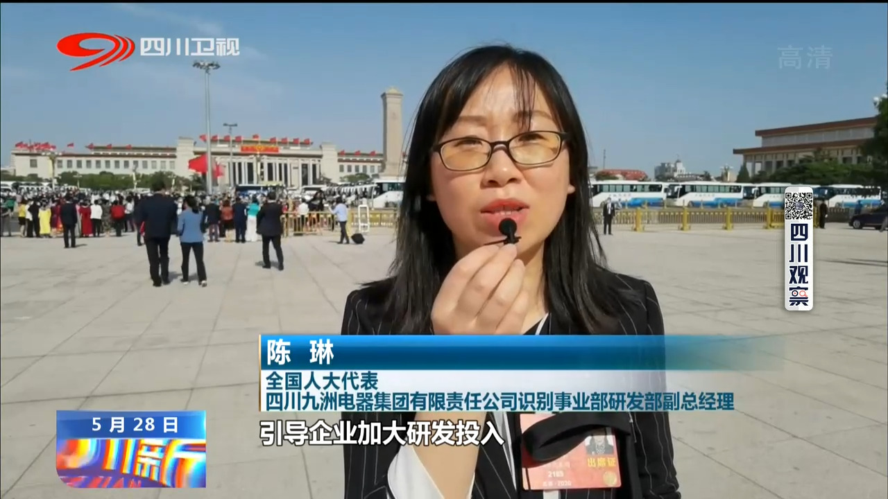 全国人大代表 四川九洲电器集团有限责任公司识别事业部研发部副总经理 陈琳:引导企业加大研发投入以及产学研成果转化方面的一些思路,那么我回去以后会把这次大会的各项精神带回去,为我们国家的国防建设作出我们更大的贡献。