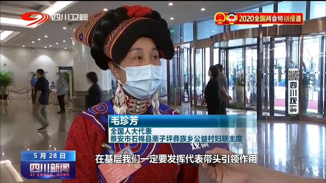 全国人大代表 雅安市石棉县栗子坪彝族乡公益村妇联主席 毛珍芳:在基层我们一定要发挥代表带头引领作用,也一定要把人民至上对人民的这种关心宣传到老百姓的心中,我们也有信心带领老百姓脱贫致富奔小康,我们绝不落下。