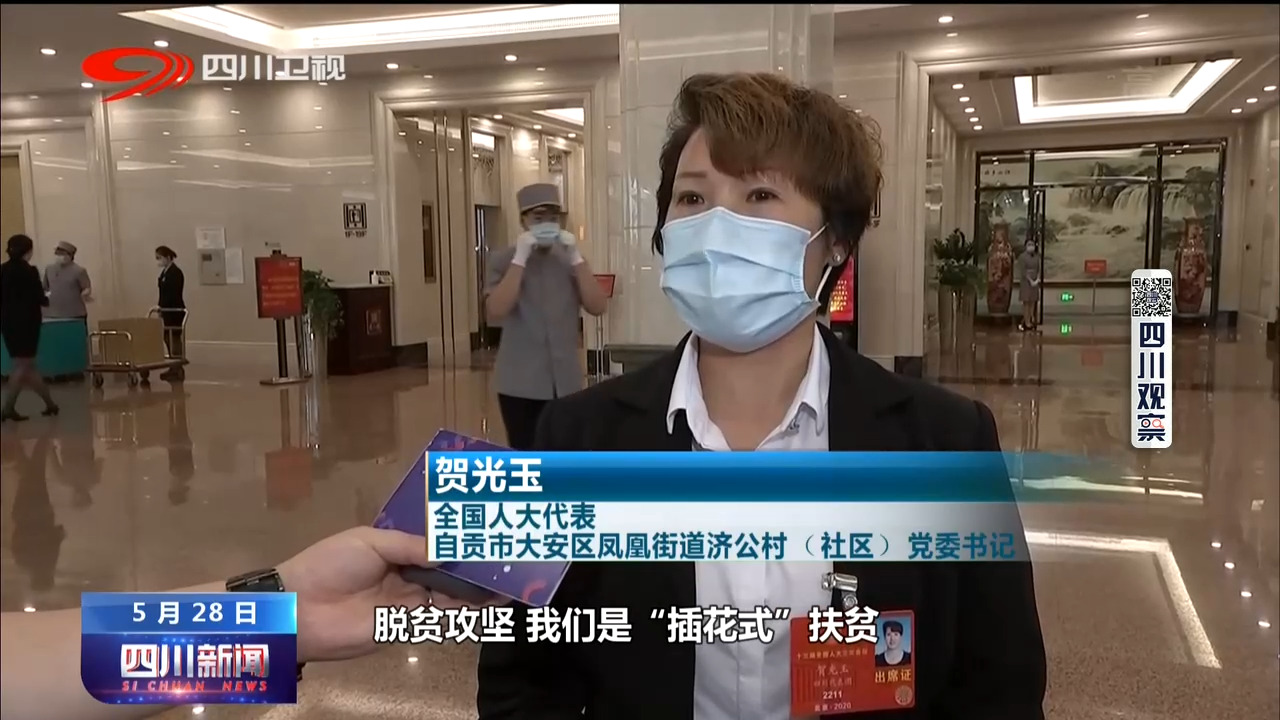 全国人大代表 自贡市大安区凤凰街道济公村(社区)党委书记 贺光玉:脱贫攻坚,我们是“插花式”扶贫,在这方面也要下足功夫不折不扣把会议精神落到实处。