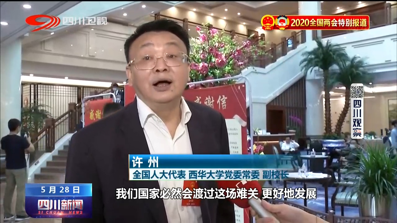 全国人大代表 西华大学党委常委、副校长 许 州:在这个特殊的时期,在党中央的英明决策下,我们国家必然会渡过这场难关更好地发展。
