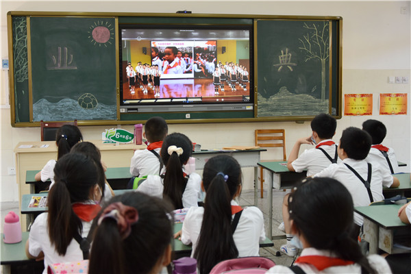 最后,全体毕业学生分班观看“栀子花开,‘YI’路芬芳”云上毕业典礼。茶小六年是沉淀,是磨砺,是蜕变,母校永远是你坚强后盾和精神家园。离校时,李校长,蒋书记与每一位同学依依告别。