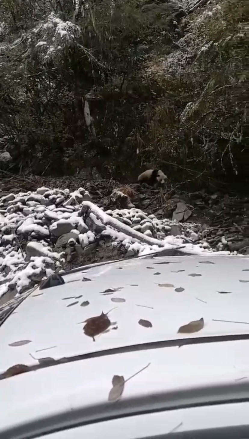 画面中大熊猫在树林里散步,慢慢悠悠地走着,欣赏着雪景。后经工作人员确认,这只野生大熊猫身体健康,没有受伤的迹象。