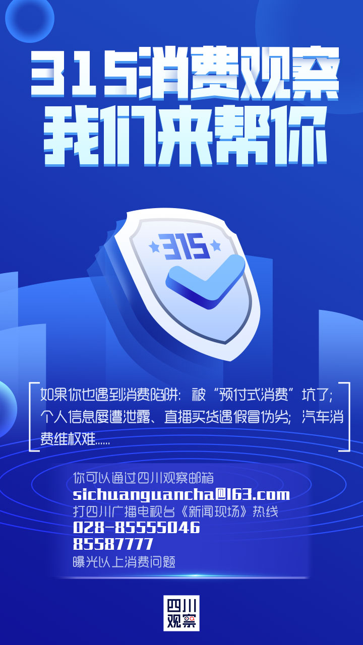 3月,《四川观察》联合四川电视台新闻频道新闻现场发布“315消费维权曝光台”,如果你正遭遇消费时的“糟心事”,请按照以下方式来向我们爆料: