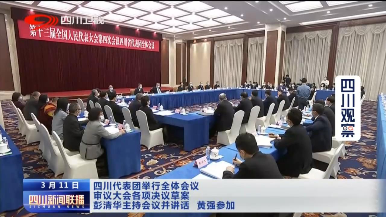 3月11日上午,十三届全国人大四次会议四川代表团在驻地举行全体会议,审议即将提交大会表决的各项决议草案。省委书记、省人大常委会主任、代表团团长彭清华主持会议并讲话,省委副书记、省长、代表团副团长黄强参加。