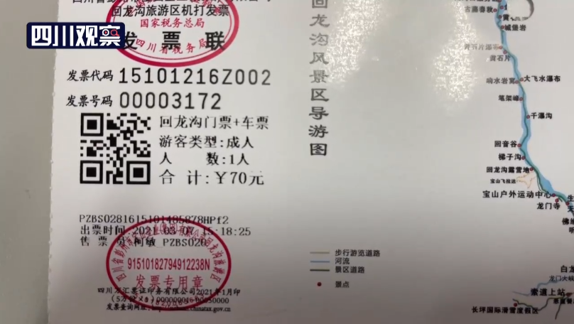 在工作人员这里,记者了解到,回龙沟风景区的门票为每人40元,乘坐往返观光车的价格为每人30元,单人一共是70元。随即记者花费140元的价格购买了两张门票和观光车车票。
