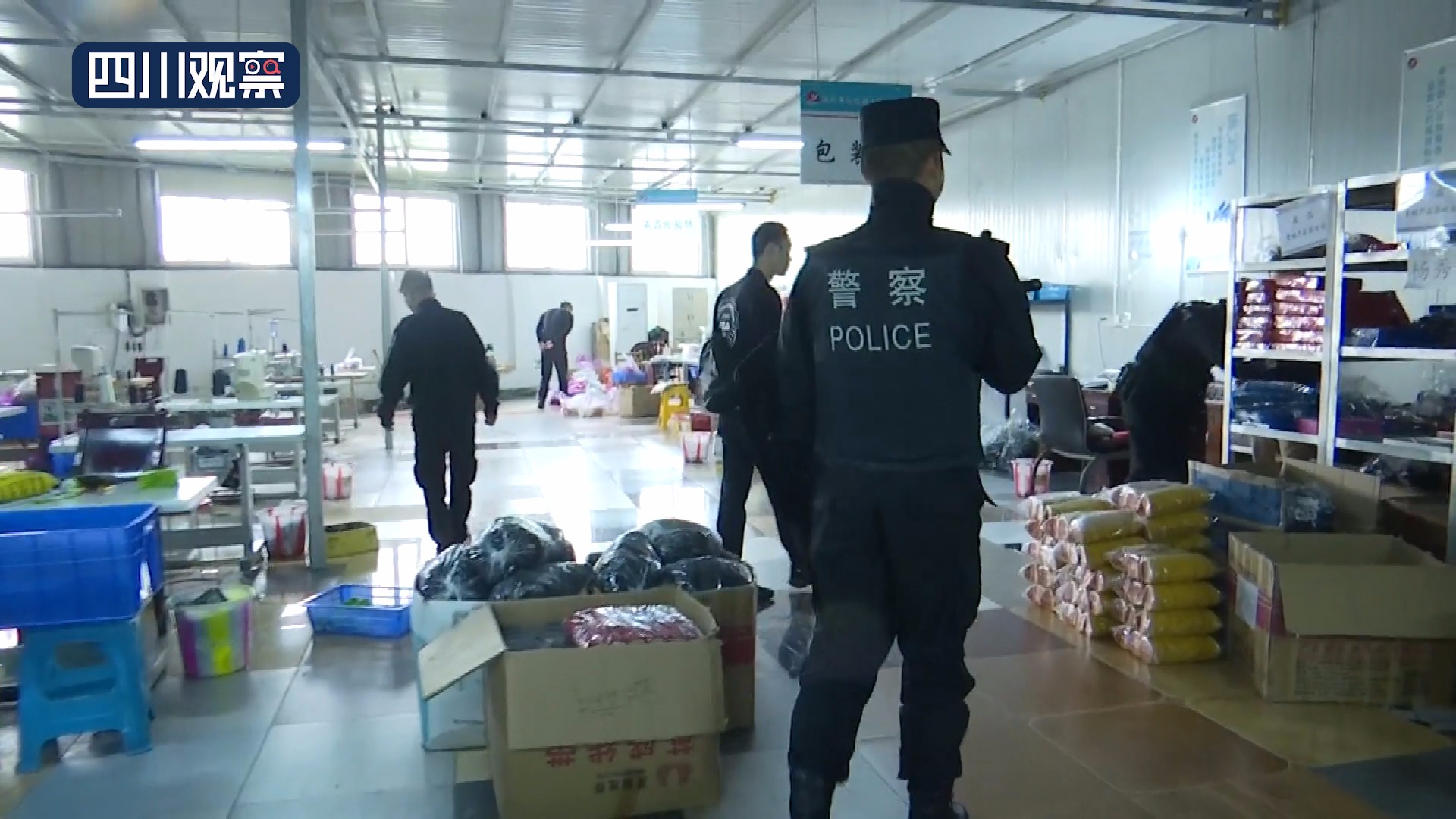 警方通过调查发现,这个厂长期大量非法生产一些军用的帽徽,包括一些臂章这种标识性的服饰,还有警用的一些标识性服饰。不久之后,广汉特巡警、刑警、派出所民警等40多名警力组成抓捕小组,对企业主要负责人等实施了抓捕工作。