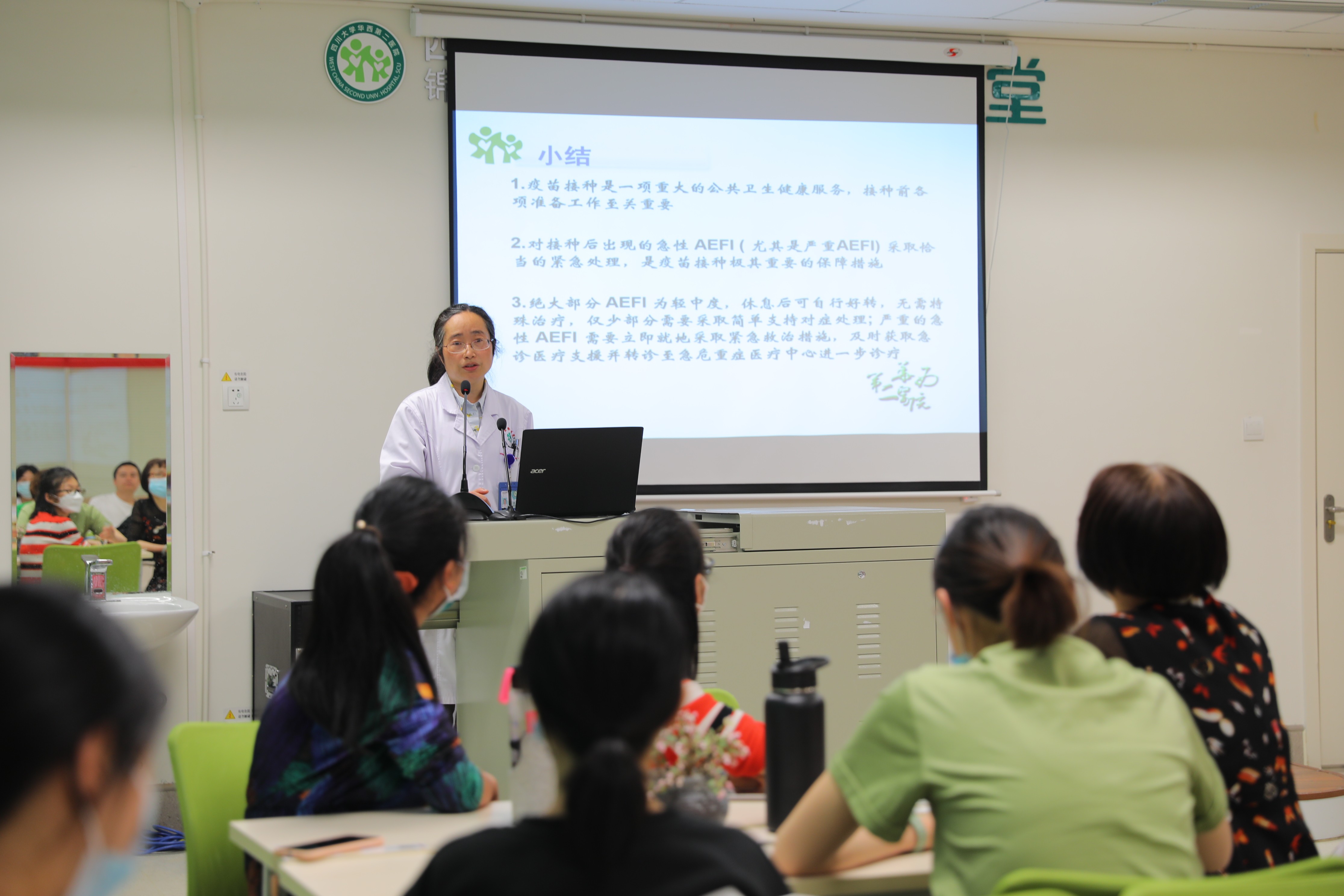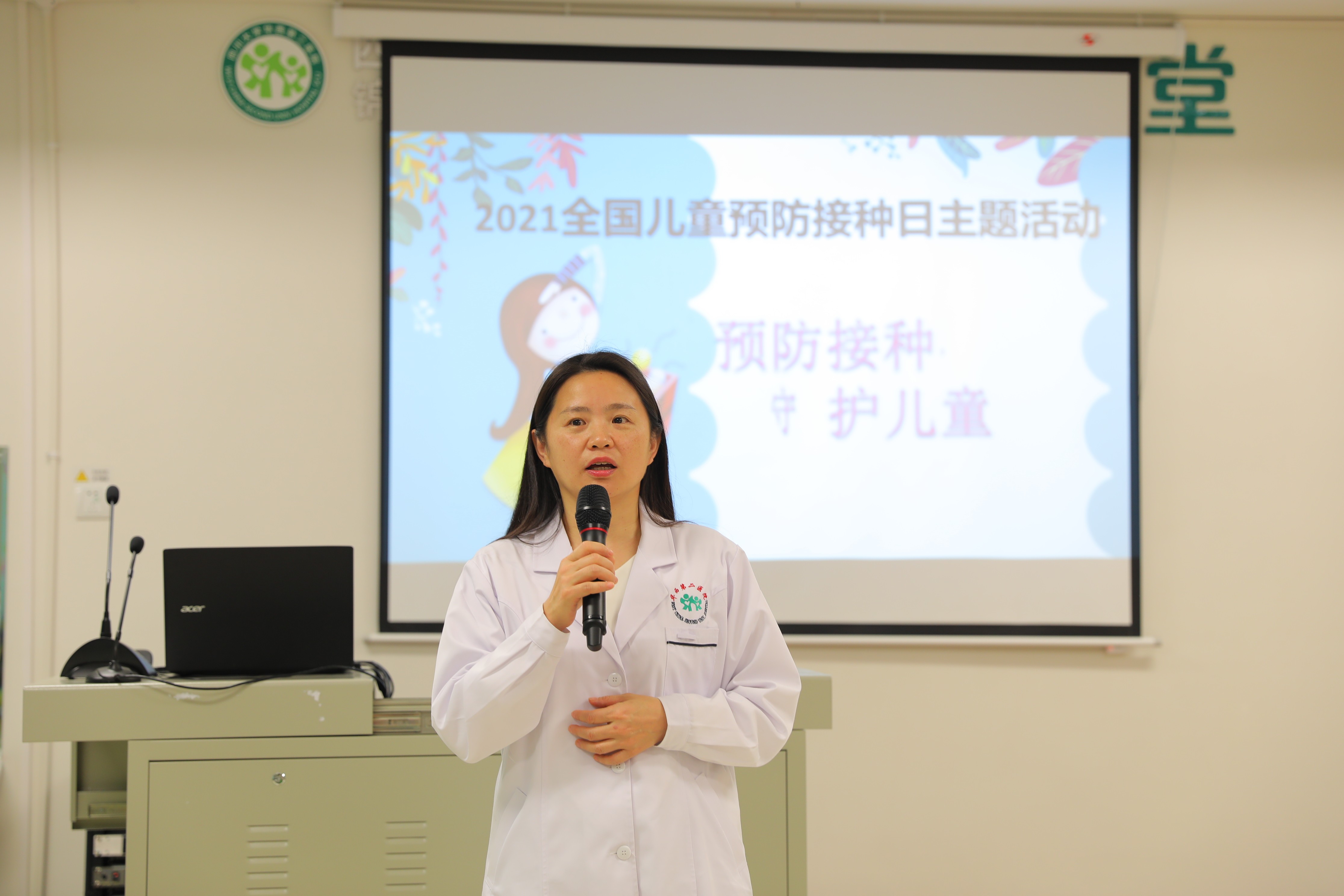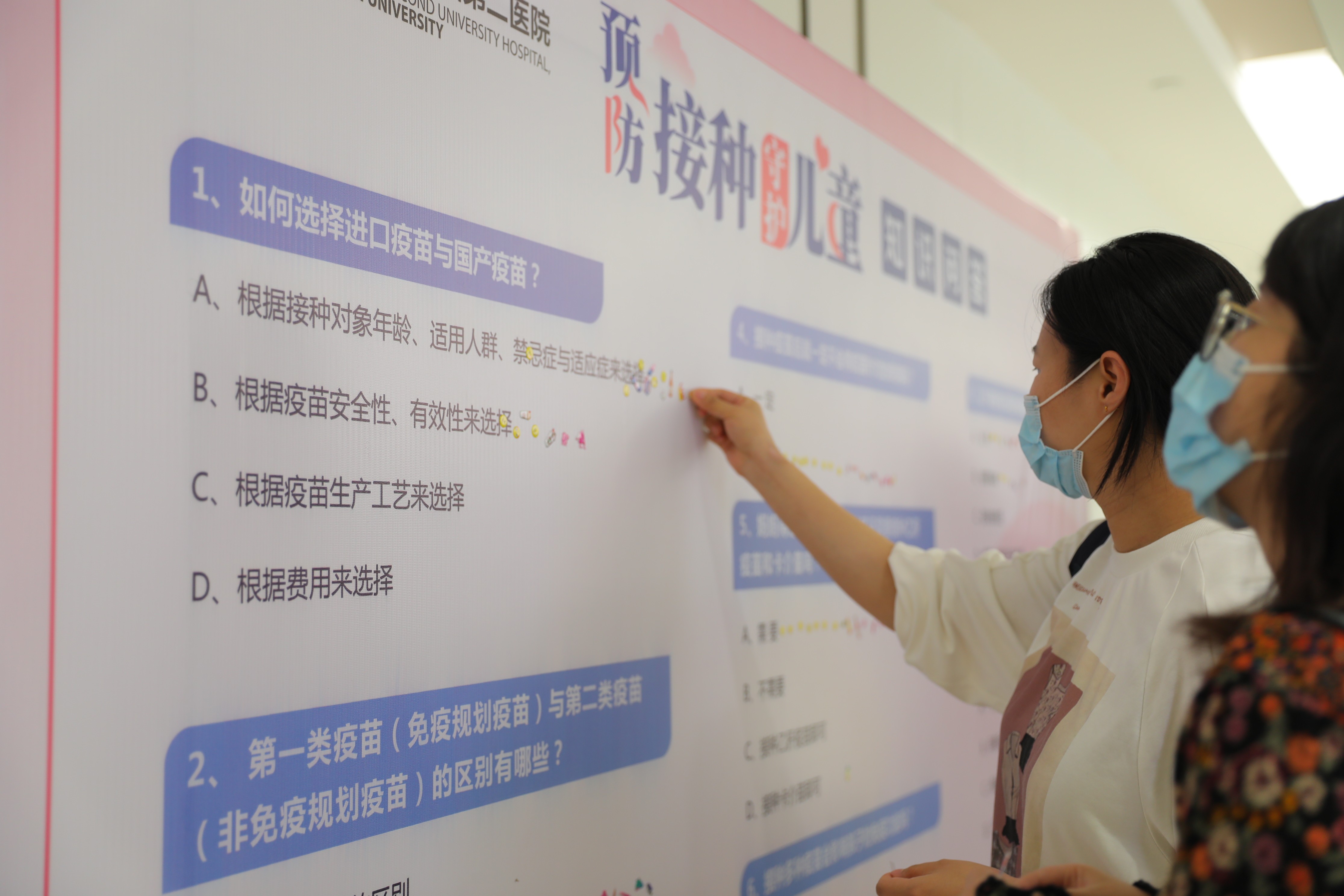 活动有“问题墙打卡”“预防接种讲座”“翻转小课堂——情景模拟”多种形式,现场还通过问题墙的形式,考验家长对预防接种知识的认识程度。华西二院病员中心的专家为大家进行了专题讲座,讲解了预防接种的专业知识。针对家长关心的疫苗接种相关问题,记者采访了华西二院病员中心主任许敏。