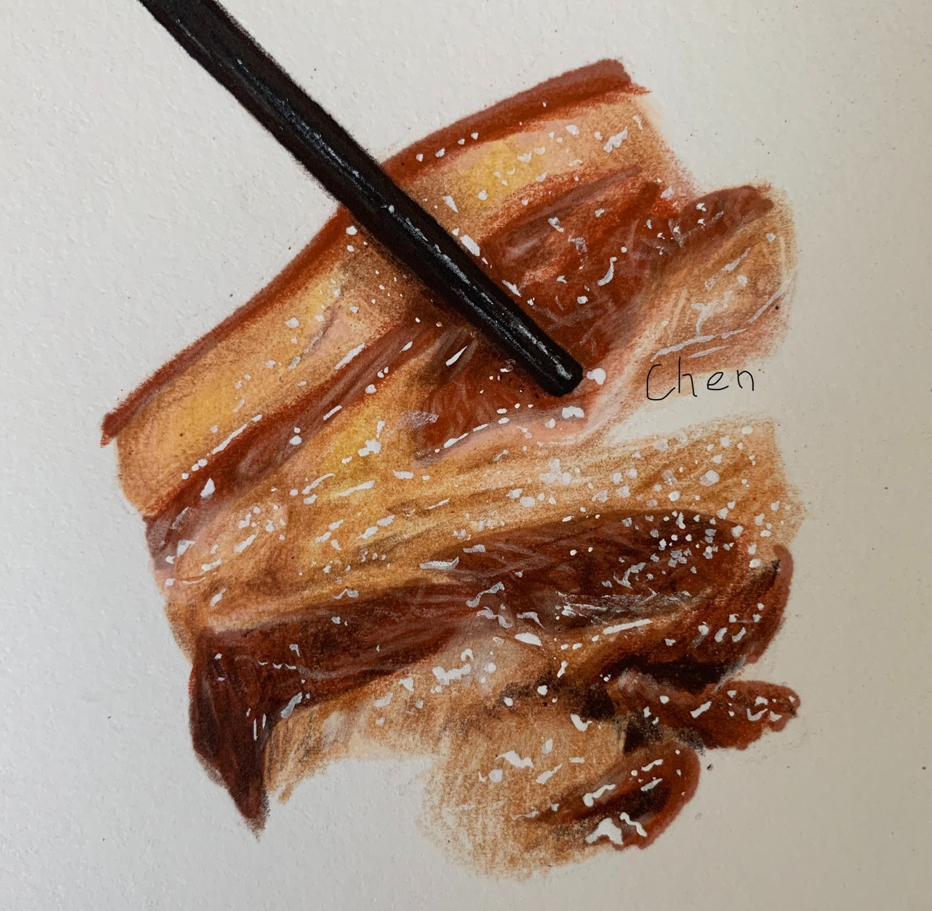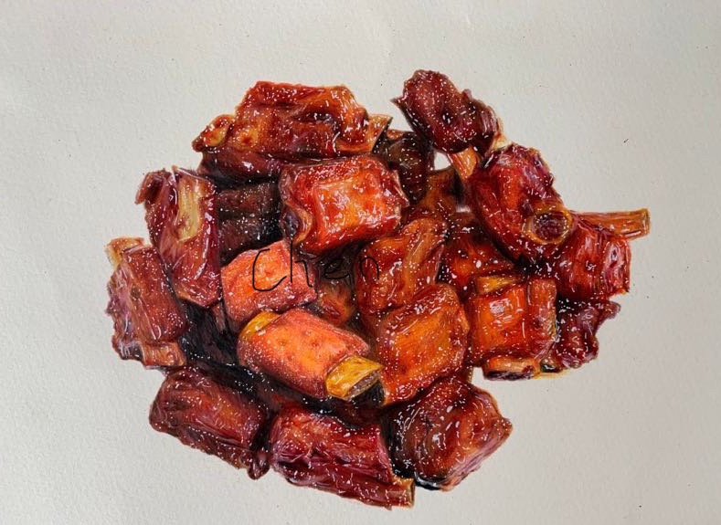 从三年前画出第一道红烧肉算起,陈兰岚自己也记不清到底画了多少道菜,因为部分作品发到网上后,网友非常喜欢,还有人用真的食物交换她的画作,甚至还有网友出资购买。