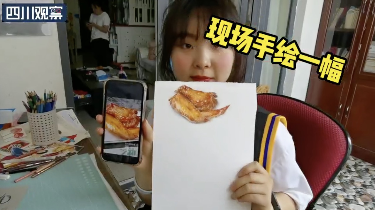 今年23岁的陈兰岚是一位手绘爱好者,同时也是一名小学英语教师,从高中开始,陈兰岚就喜欢画画,尤其擅长写实风格。当记者问到为什么会想到把美食画到纸上,陈兰岚不好意思地说,作为一名喜爱美食的女孩子,想要满足对美食渴望的同时又要兼顾保持身材,于是就想到了在纸上“烹饪”,把自己喜欢的食物用画笔“做”出来,这样就能一举两得了。