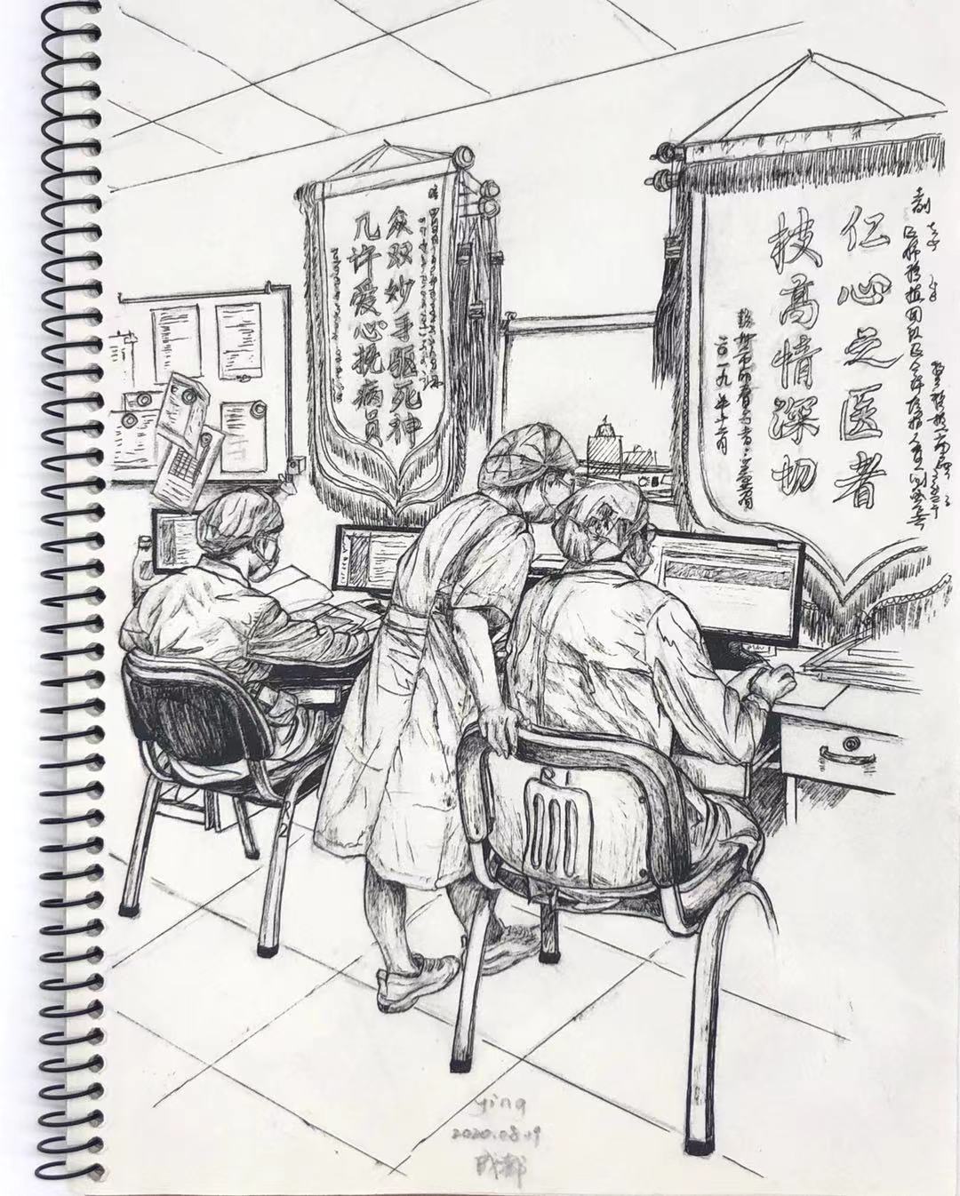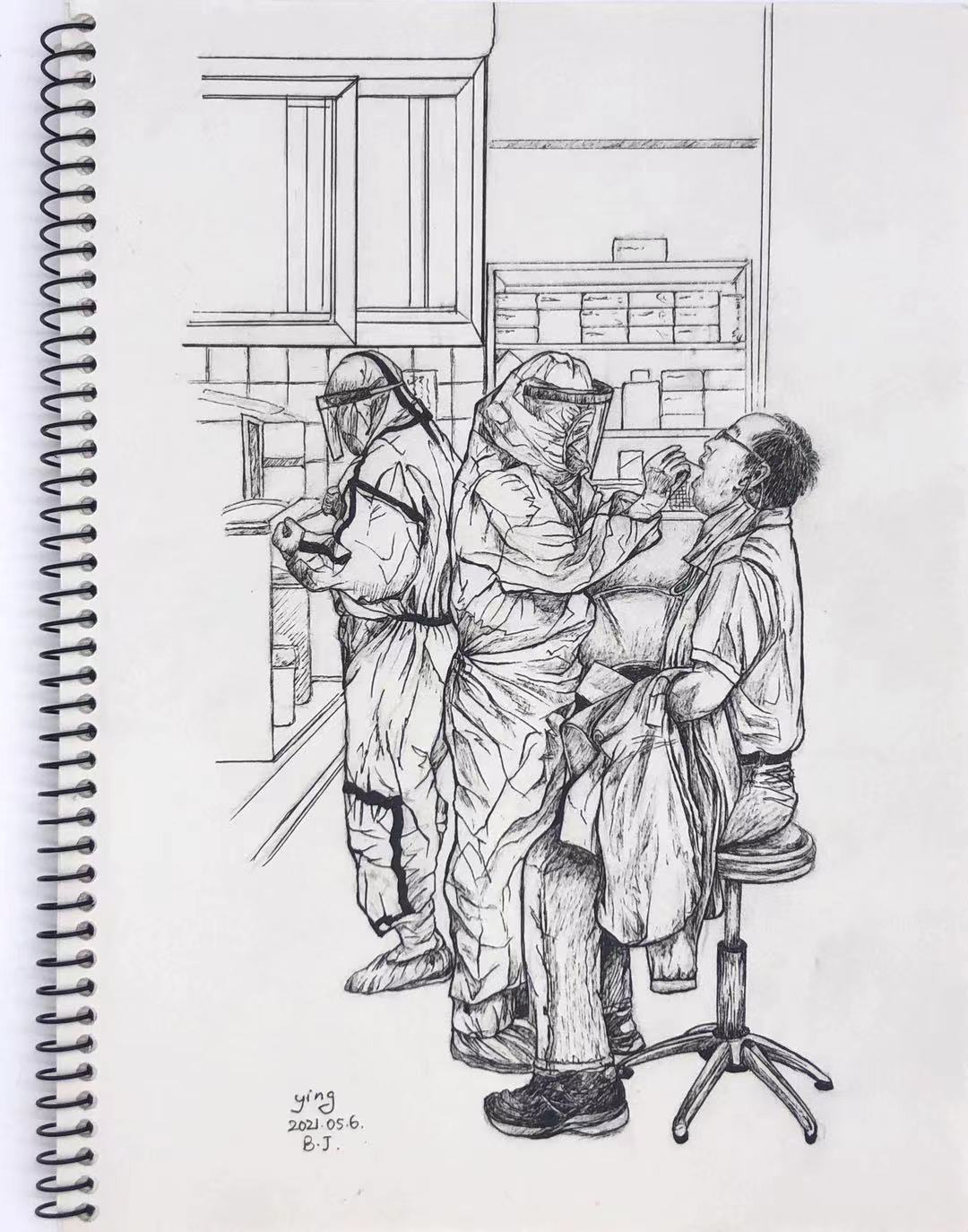 而这次陈颖的画作,张医生也一直保存在手机里,“一笔一画记录下我们工作的样子,特别用心,她对我们工作的观察和理解,让我非常感动。”