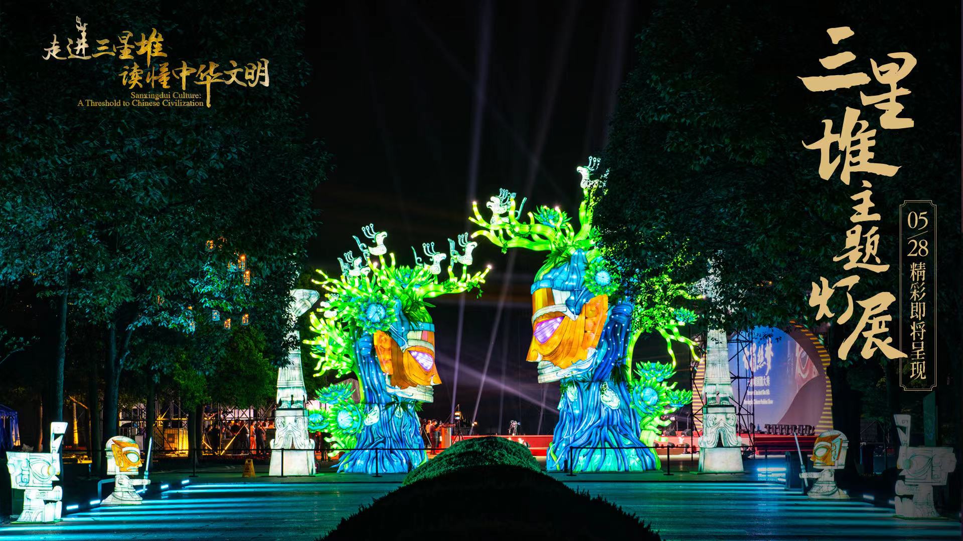 5月27日,主办方发布了11张三星堆主题灯展海报,记者了解到,此次灯展是邀请了中国著名的自贡彩灯团队,将三星堆最具特色的文物形象,以巨型彩灯的形式展现给观众和游客。